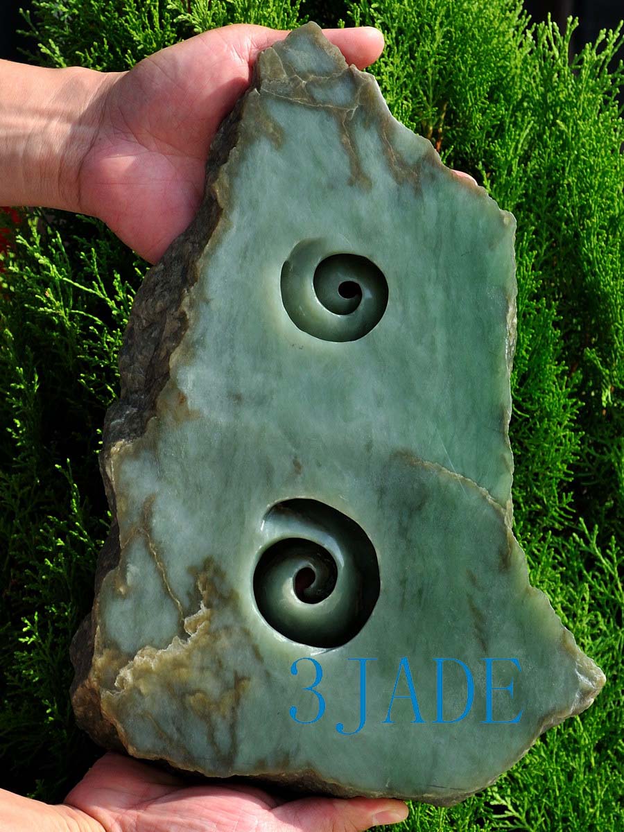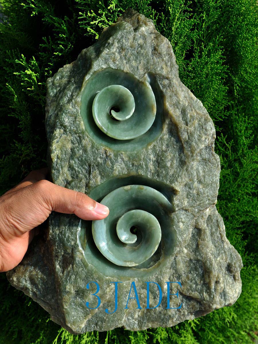 • This 16" spiral shape Maori Koru sculpture is hand carved out of solid Canadian BC nephrite jade. The New Zealand Maori style Koru statue represent new life, new beginnings, hope, growth and harmony.
