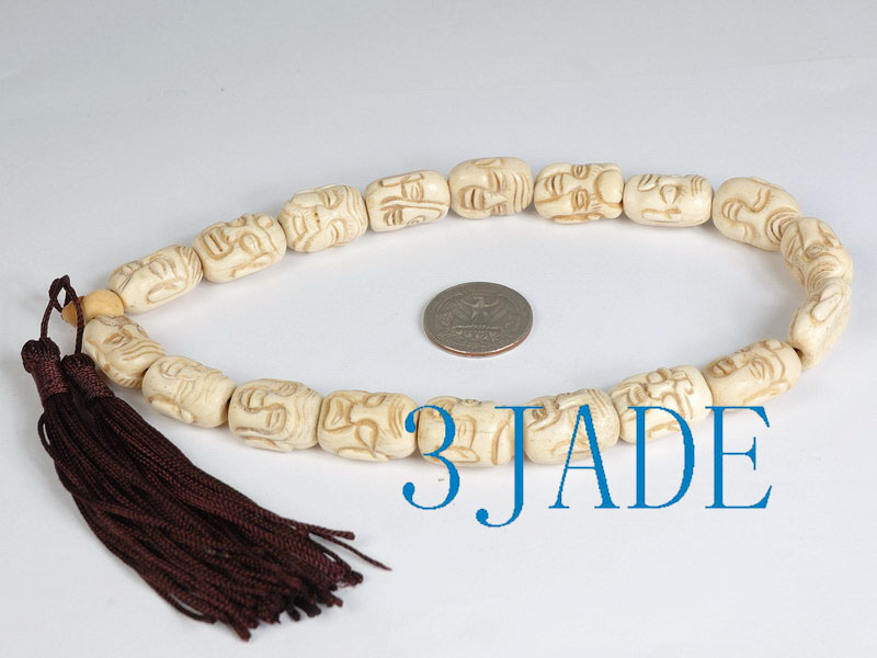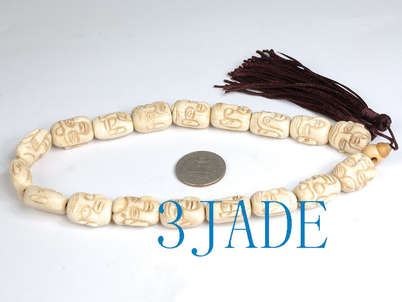 Material: Yak boneSize: 18 + head and end beads, carved Arhat bead is approx: 15mm * 20mm * 11mm