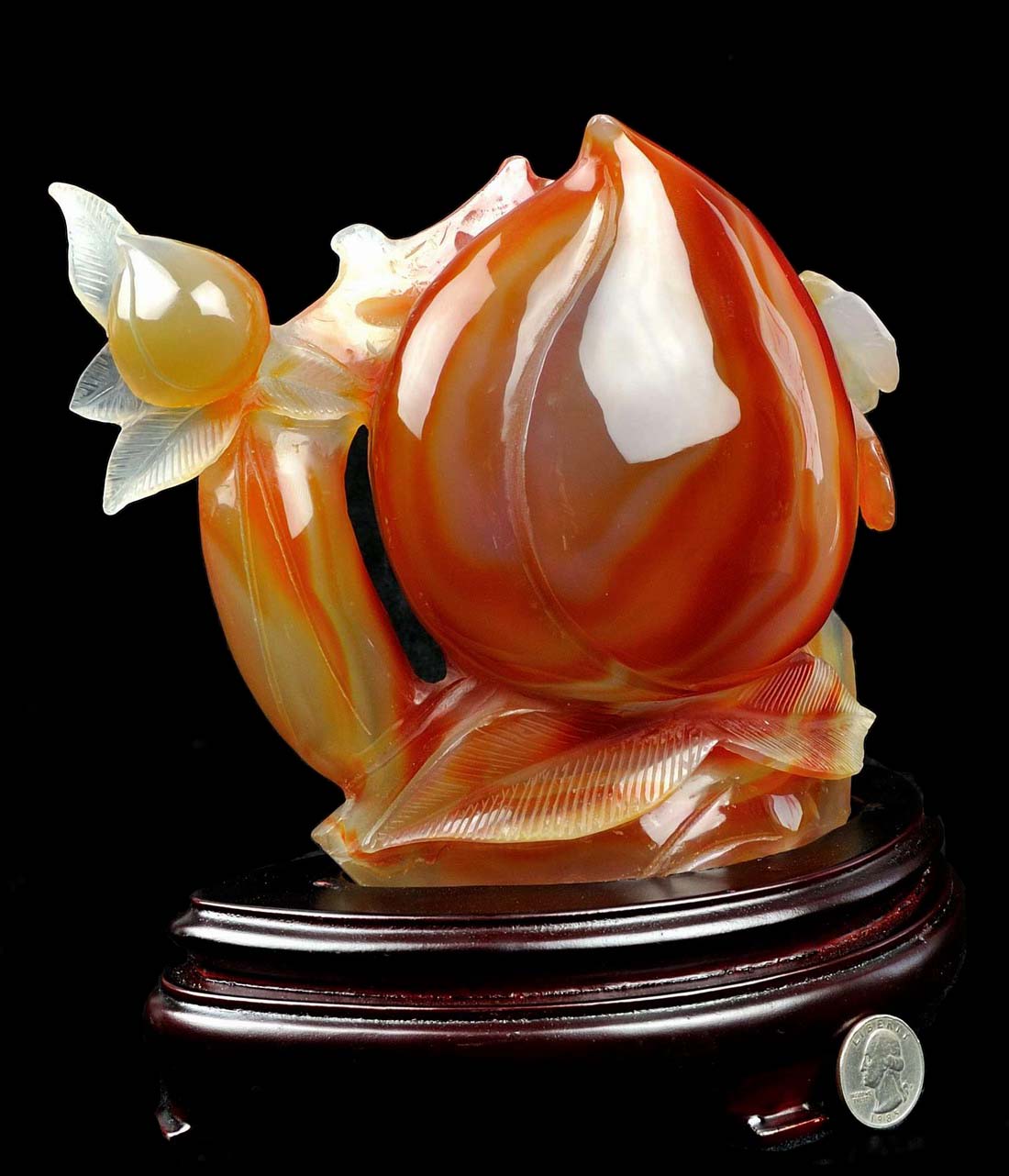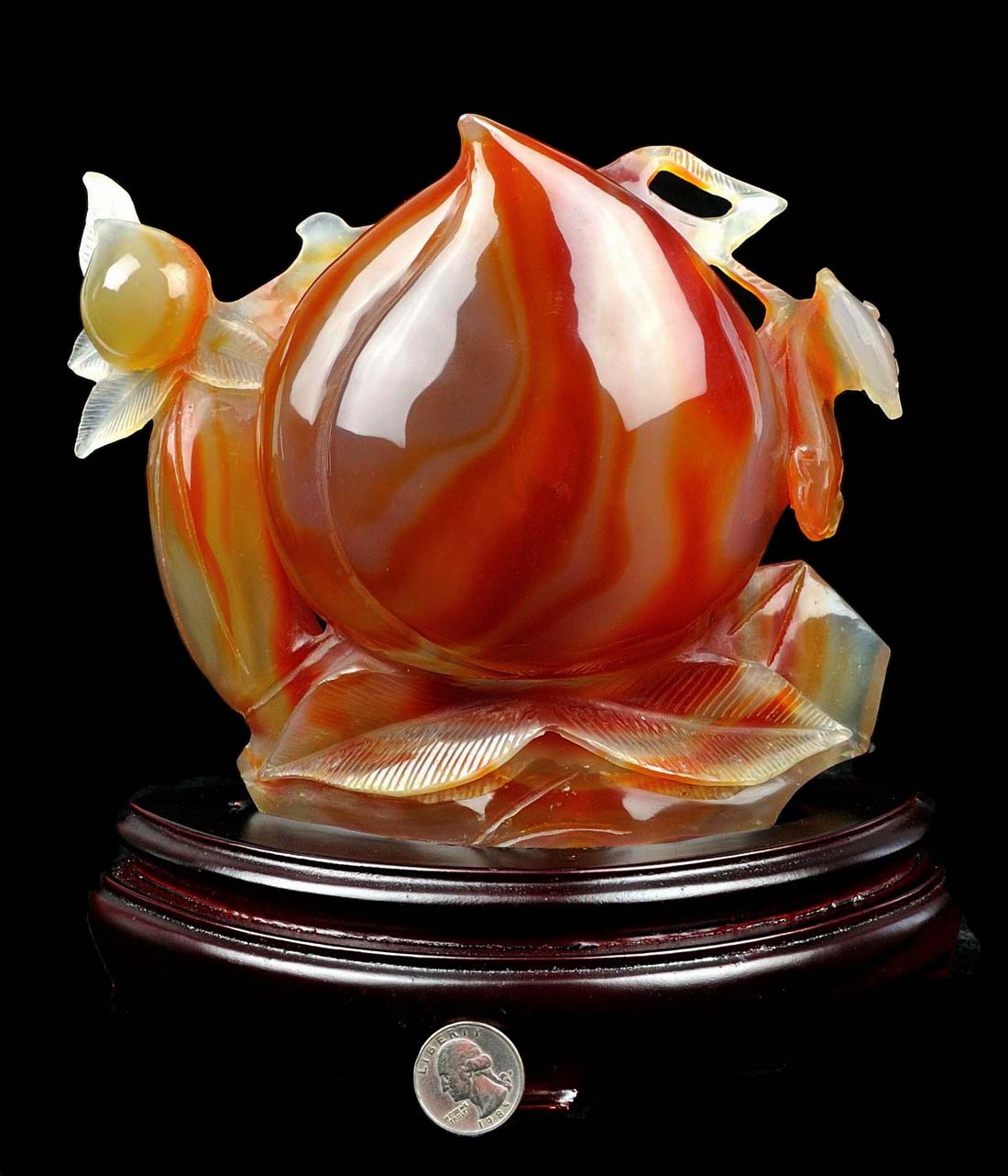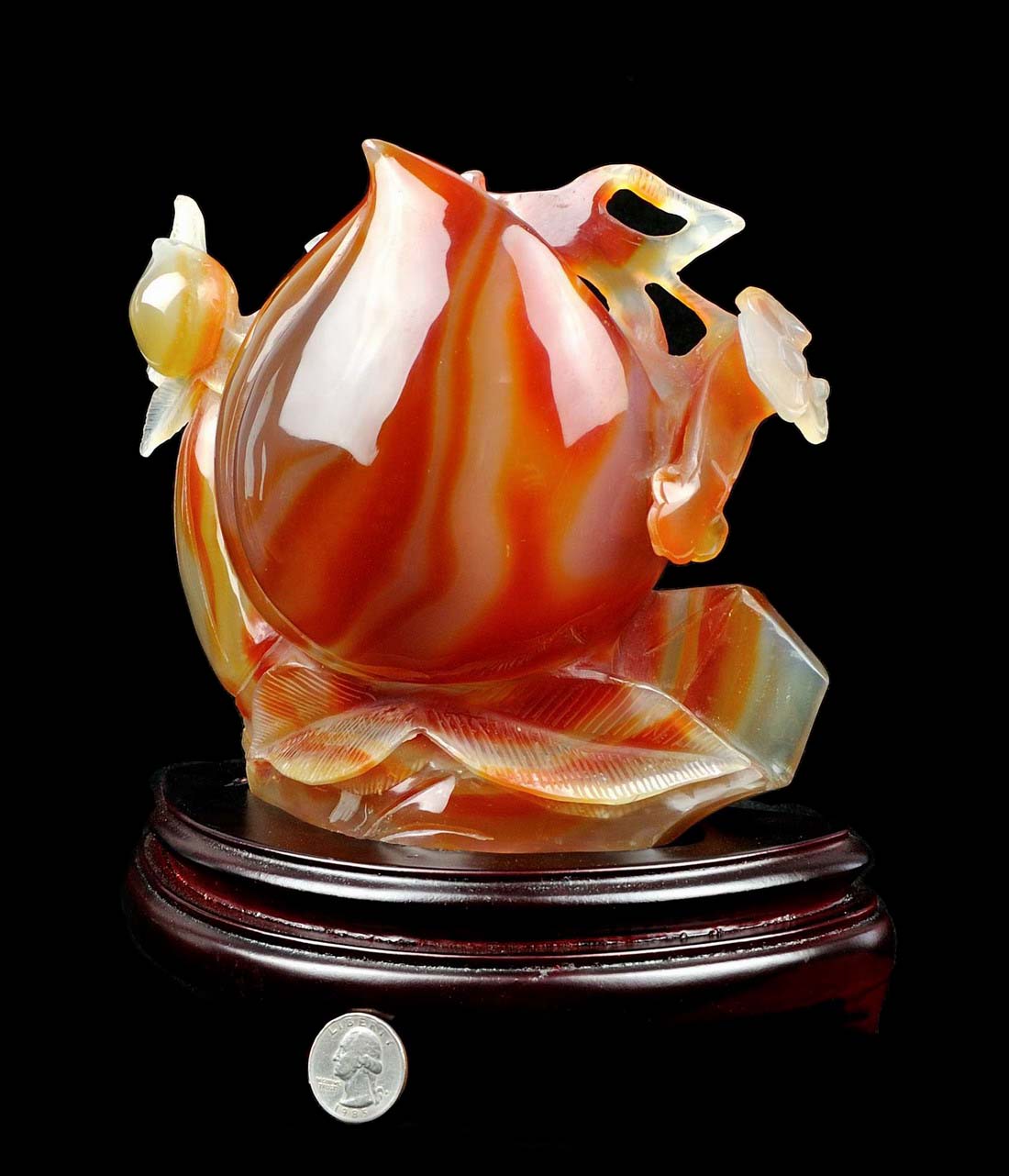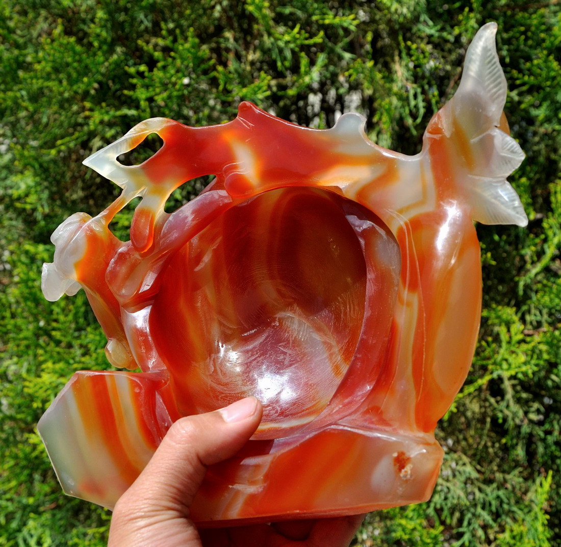 Carved from one solid piece of red agate with superb design. Great handwork, as shown in the pictures.