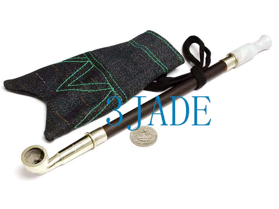 Material: Natural nephrite jade (mouthpiece), sandalwood (stem), copper alloy (bowl)