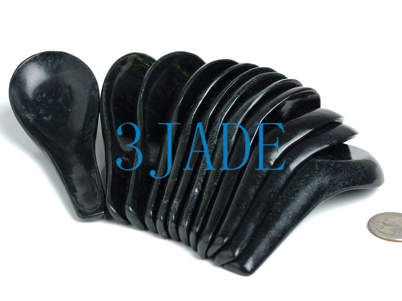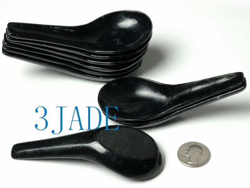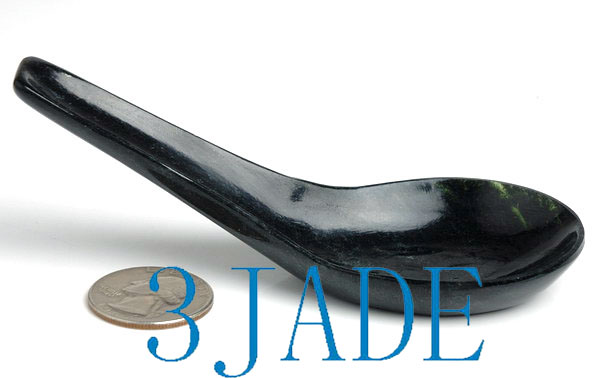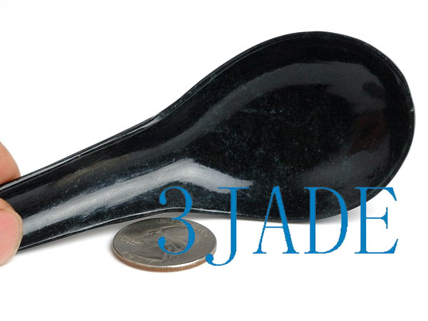 Product DetailsMaterialNatural Chinese Black Green Jade (Black Green jade is market name or trade name, it is a kind of serpentinite)SizeLength approx. 4 1/2" * 1 3/4 * 1/2"Net Weightappro. 35 gramsManufacturer Info.3JADE MANUFACTURING(China), Inventory No. N010001DescriptionThis listing is for one spoon, randomly choosing from our...