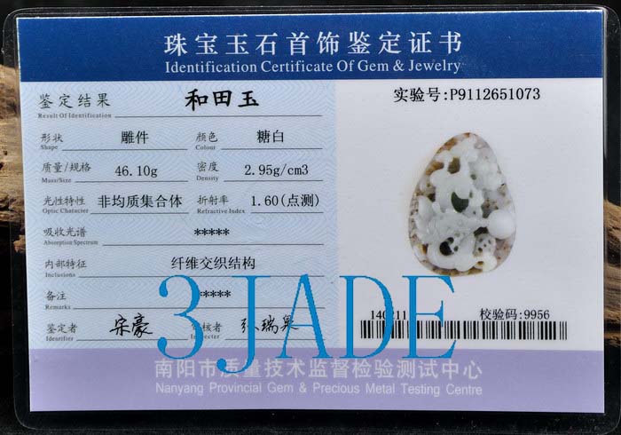 Description Natural Hetian nephrite jade, natural color, great handwork, comes along with certificate, as shown in the pictures.