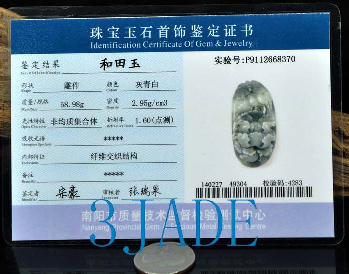 Description Natural Hetian nephrite jade, natural color, great handwork,comes along with certificate, as shown in the pictures.