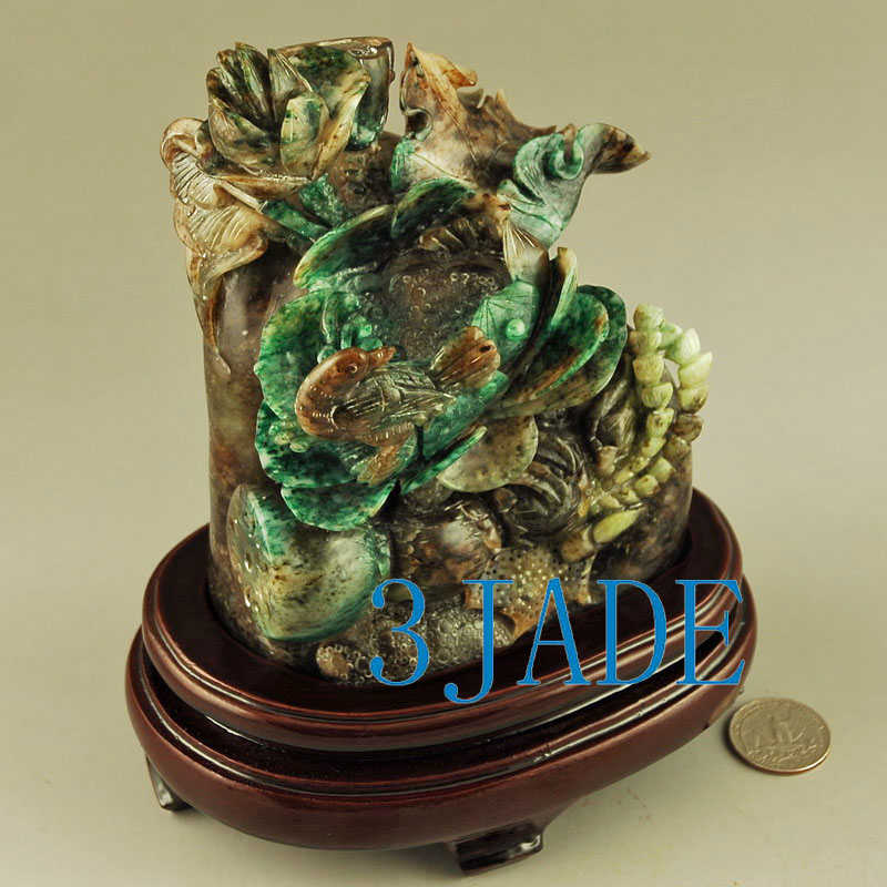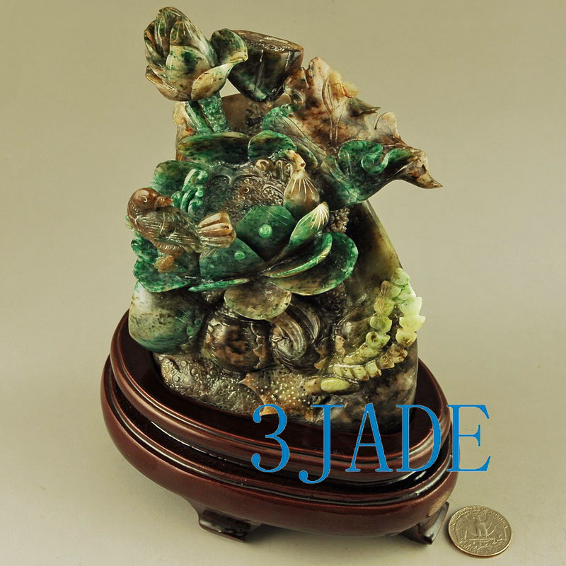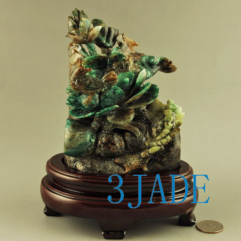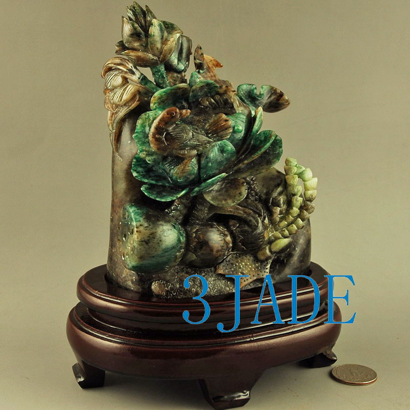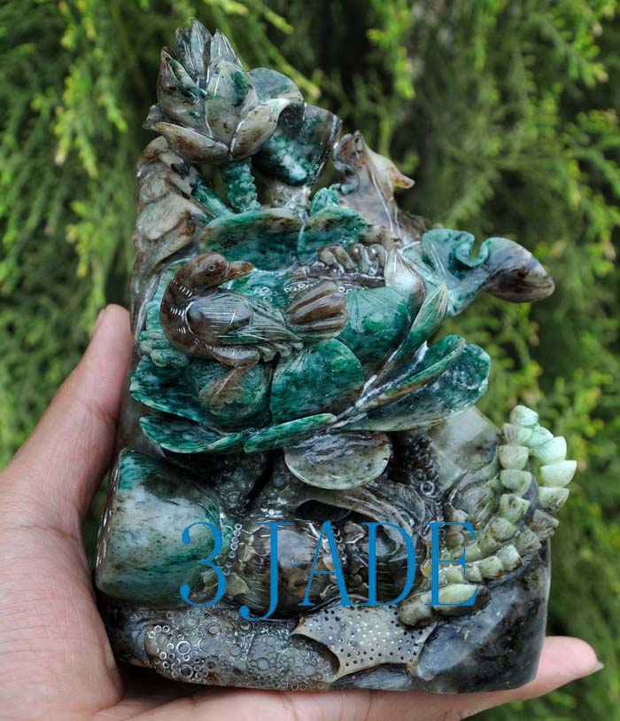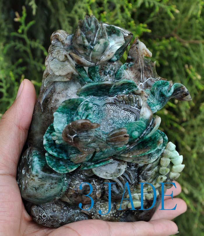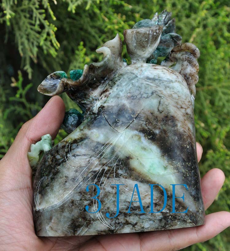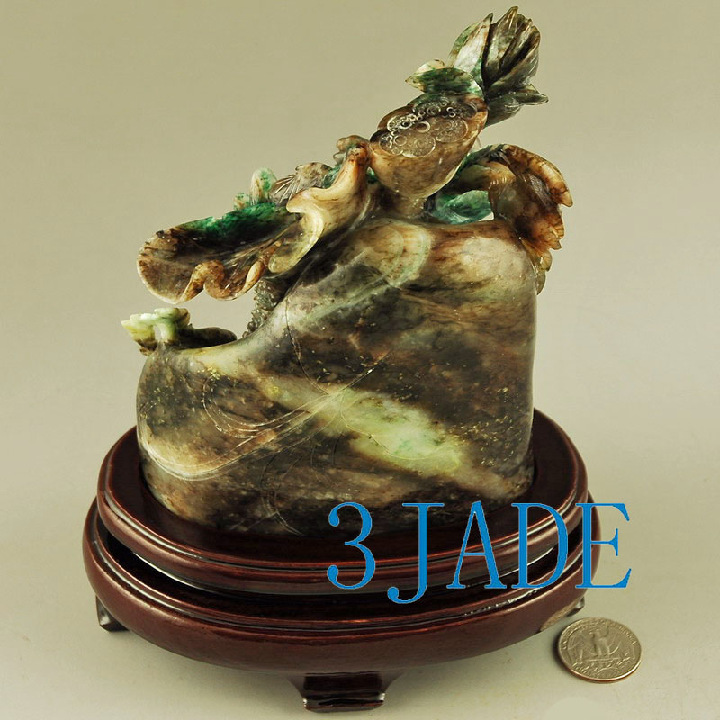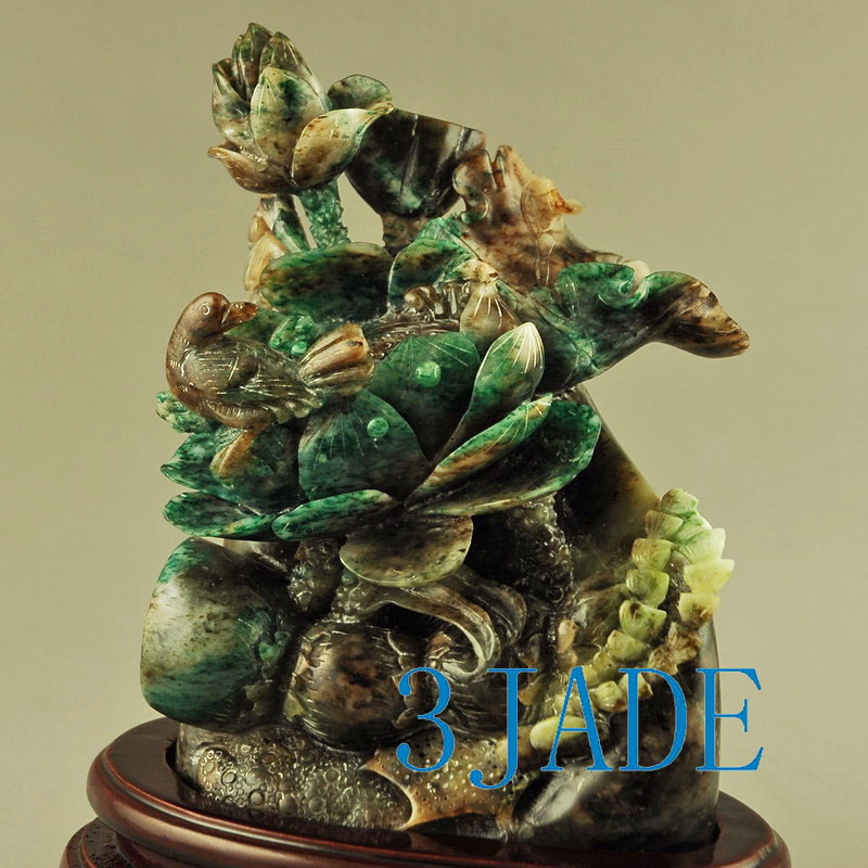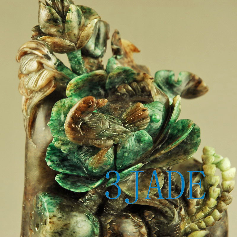 Natural material , natural color, carved from one whole piece of jade with superb design, perfect workmanship, as shown in the pictures.