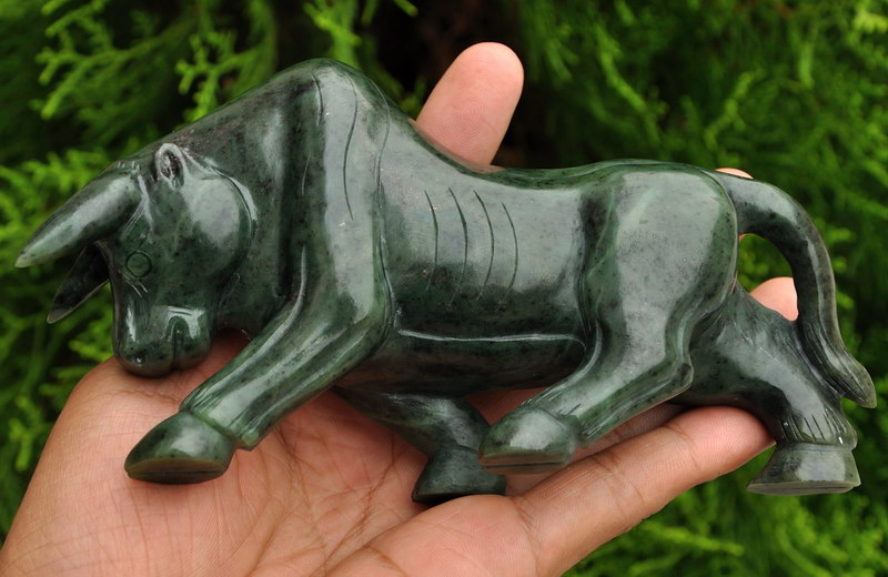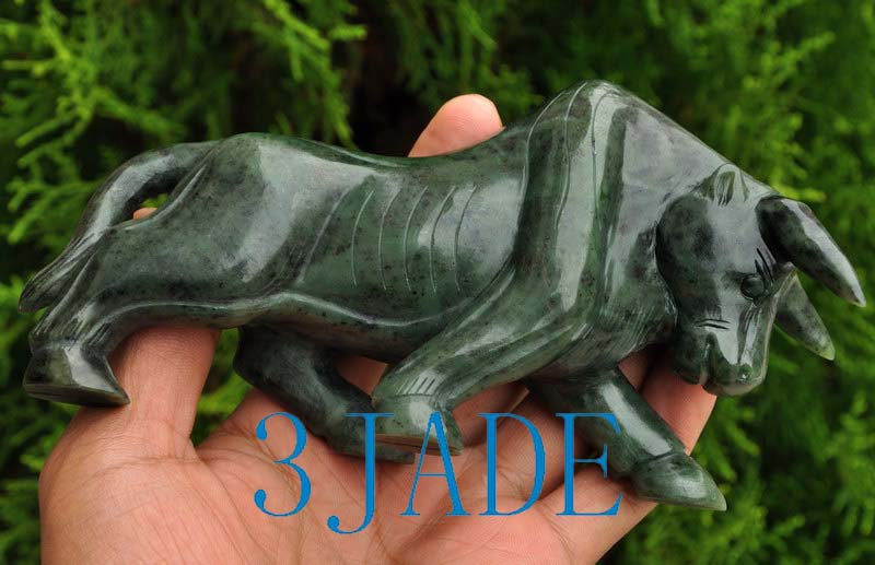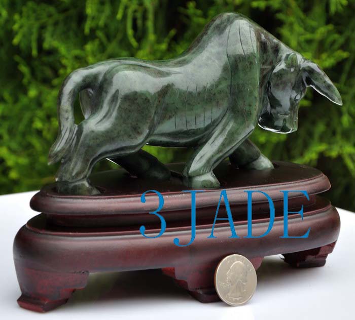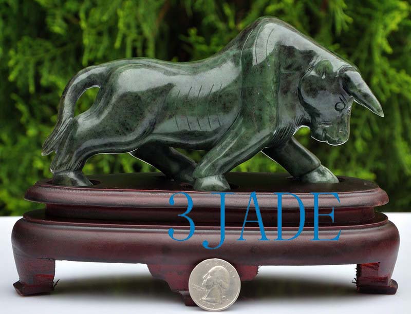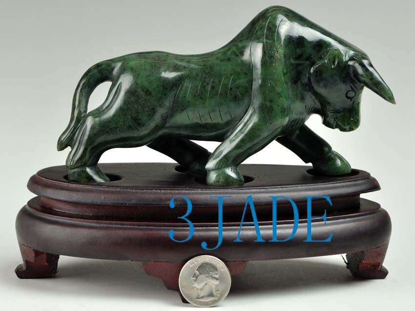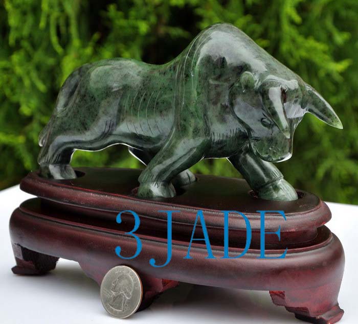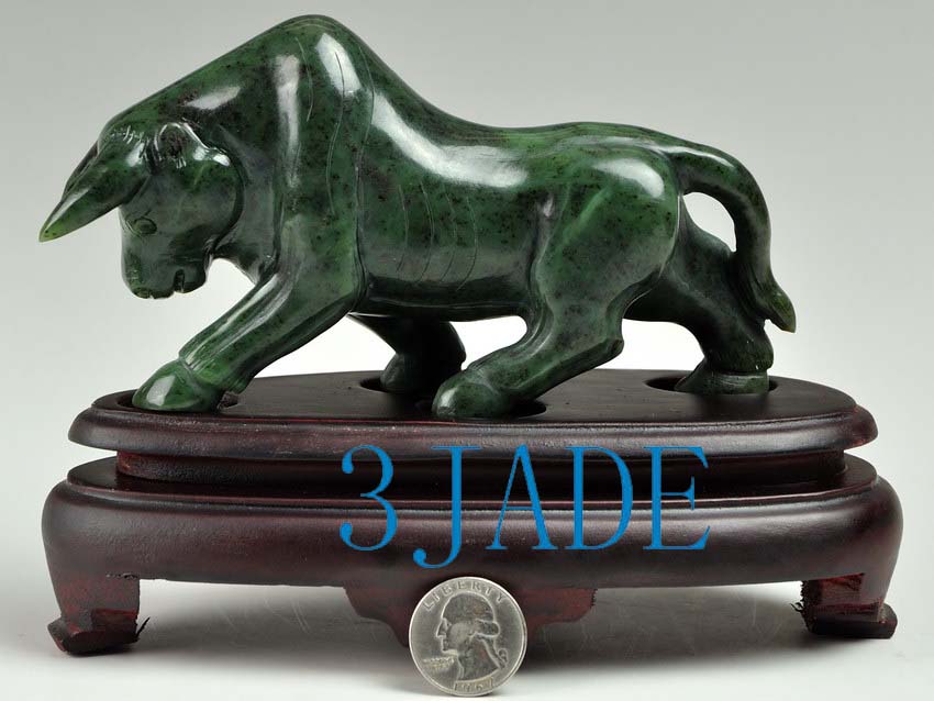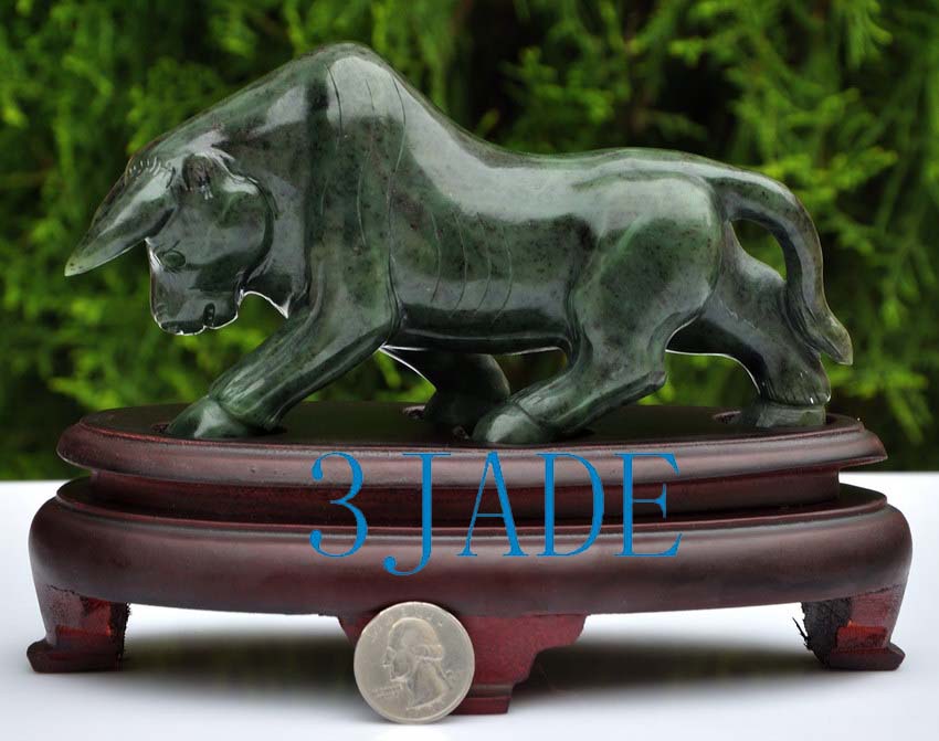 Material: Natural Green Nephrite JadeSize: Carving: 6 1/4" * 3 1/4"(height) * 1 3/4", Stand: 7 1/4" * 2 1/8"(height) * 3 1/8"