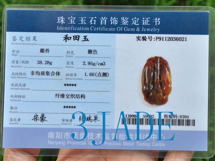 Natural Hetian nephrite jade, great handwork, comes along with certificate, as shown in the pictures.