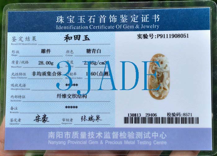 • Material: Natural Chinese Hetian nephrite jade (comes from Hetian, Sinkiang province of China)
