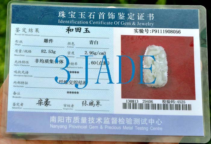 | Description | Natural Hetian nephrite jade, great handwork, comes along with certificate, as shown in the pictures. |
