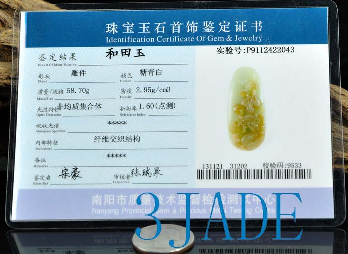 Natural Hetian nephrite jade, great handwork, comes along with certificate, as shown in the pictures.