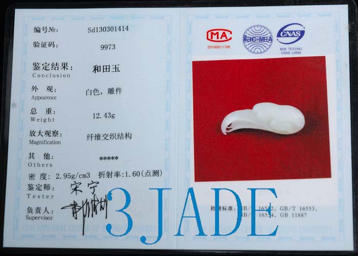 Natural Hetian nephrite jade, great handwork, comes along with certificate, as shown in the pictures.