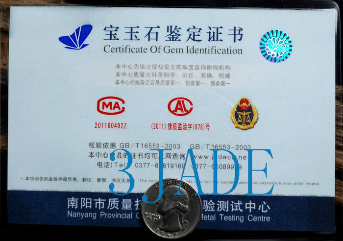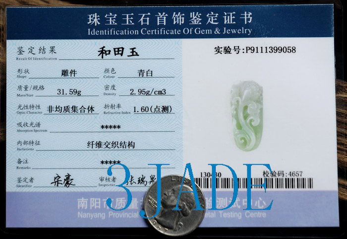 | Description | Natural Hetian nephrite jade, great handwork, comes along with certificate, as shown in the pictures. |
