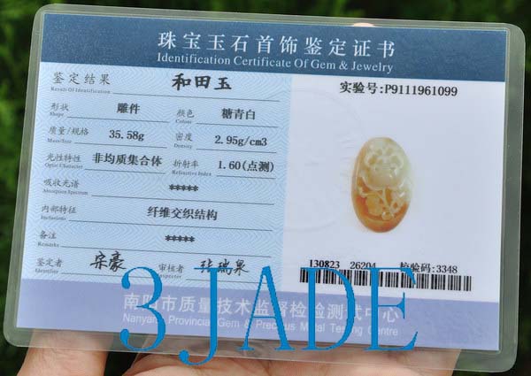 Material: Natural Hetian Nephrite Jade (comes from Hetian, Sinkiang province of China)