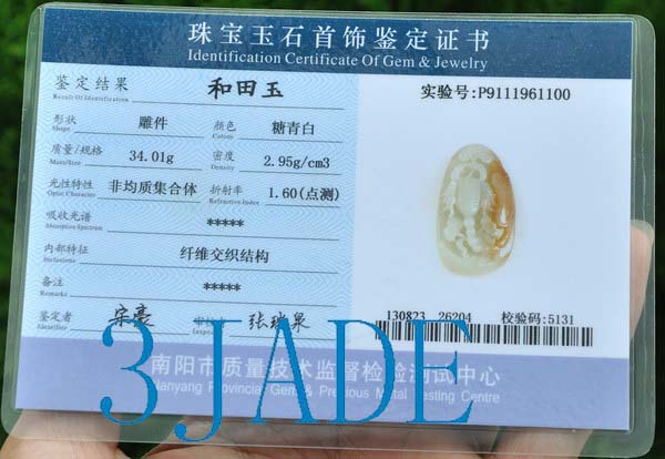 Material: Natural Hetian Nephrite Jade (comes from Hetian, Sinkiang province of China)