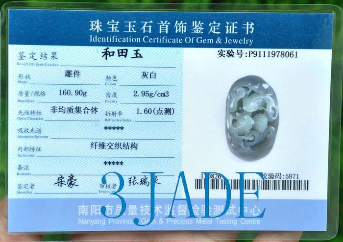 Natural Hetian nephrite jade, great handwork, comes along with certificate, as shown in the pictures.