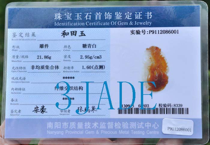 Natural Hetian nephrite jade, great handwork, comes along with certificate, as shown in the pictures.