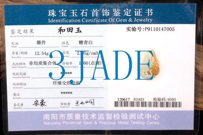 | Description | Natural Hetian nephrite jade, great handwork, comes along with certificate, as shown in the pictures. |