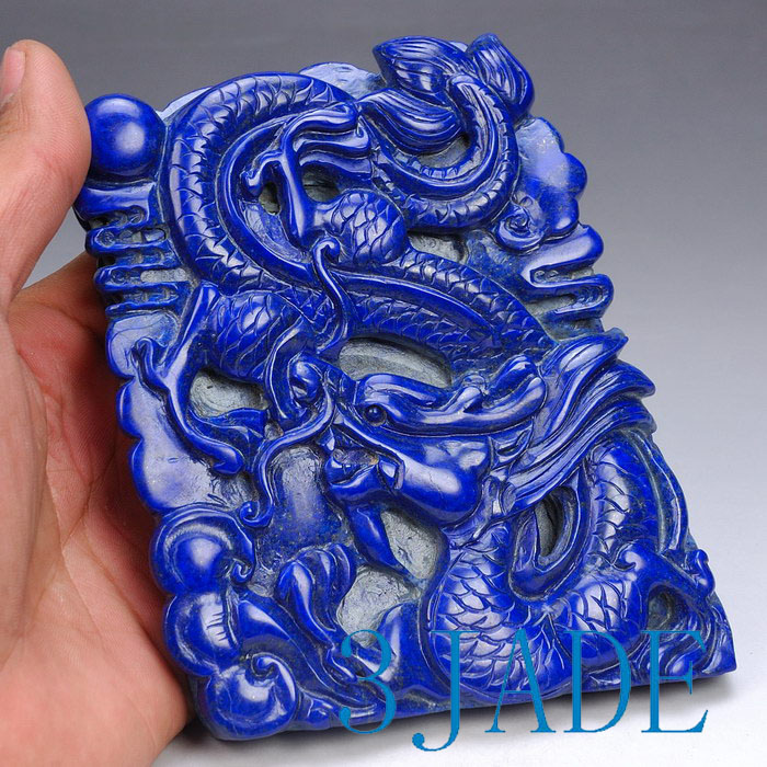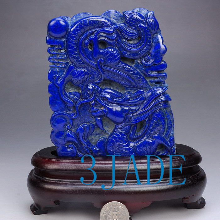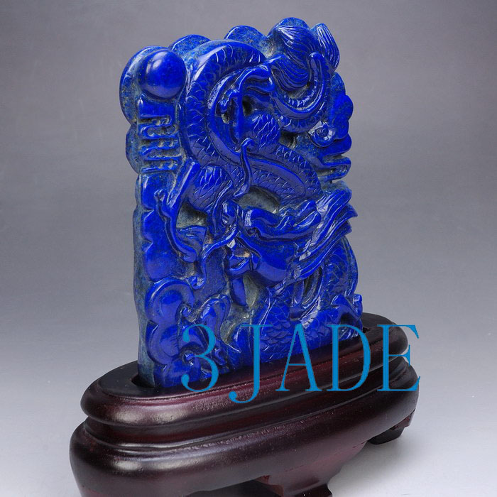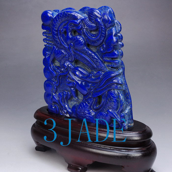 Material Natural Lapis Lazuli GemstoneSize Carving: 4 1/4" * 5 1/4"(height) * 3/4", Stand: 6 1/4" * 2 1/4"(height) * 2 1/4"