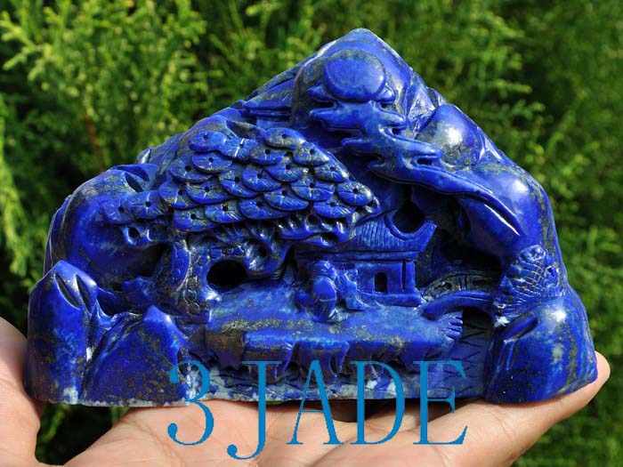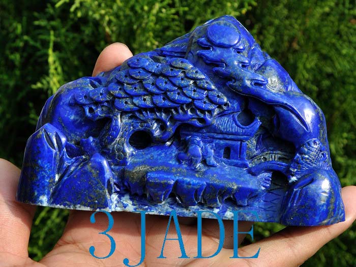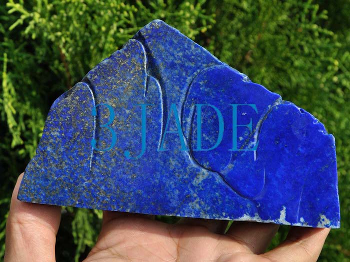 Material Natural Lapis Lazuli GemstoneSize Carving: 5" * 3 1/4"(height) * 1",Stand: 5 1/2" * 1 1/4"(height) * 3 1/4"