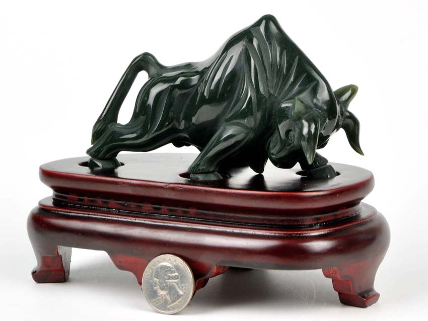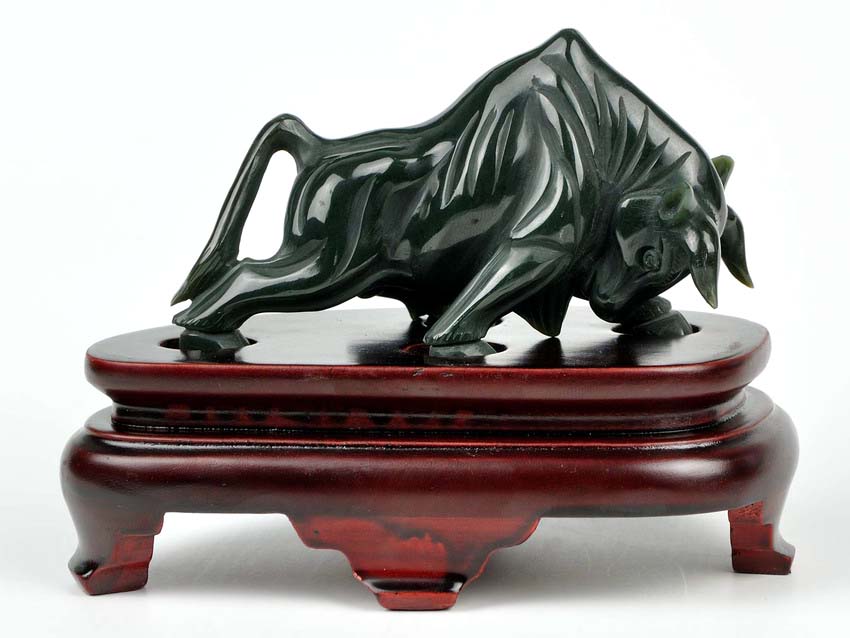 • Carved from one solid piece of natural jade with superb design.