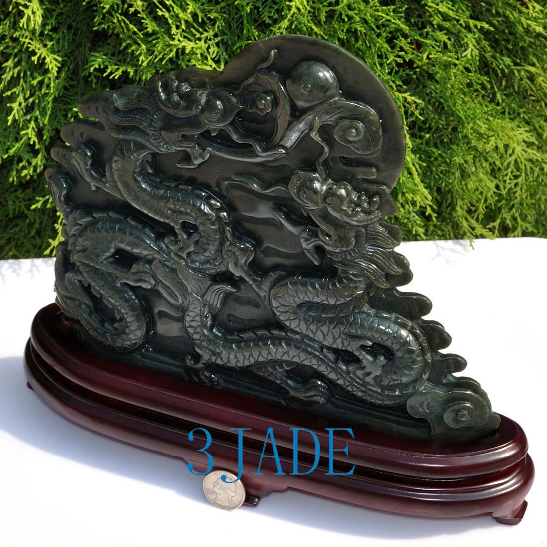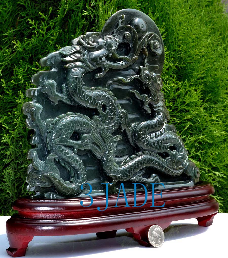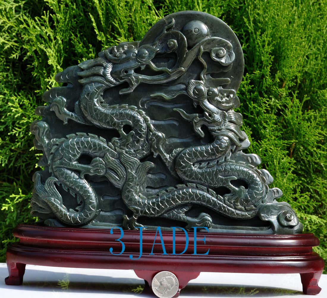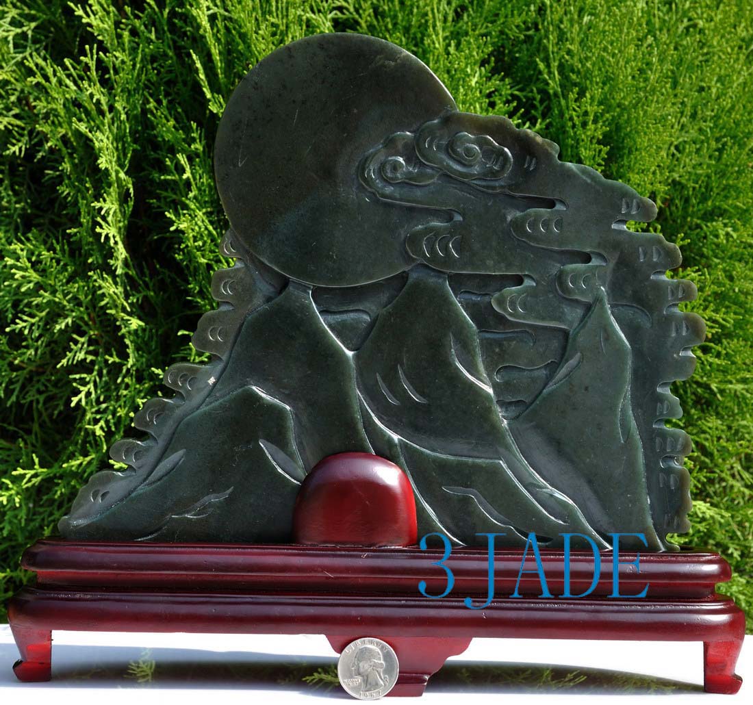 Material Natural nehprite jadeSize Carving: 10" * 8 1/2"(height) * 1", stand: 11 1/2" * 4"(height) * 3"