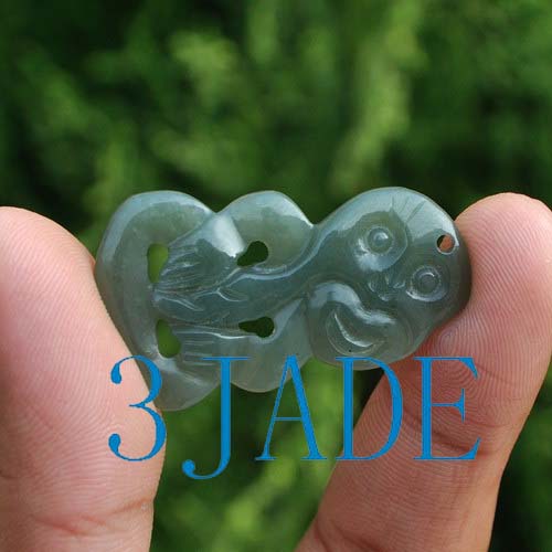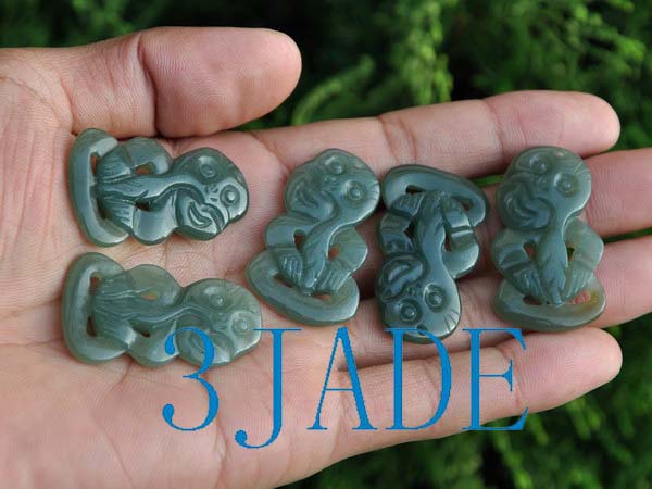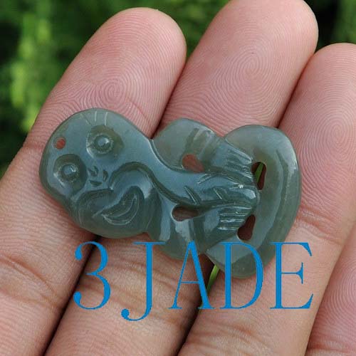 Hand carved natural nephrite jade New Zealand Maori style Hei Tiki pendant necklace, two sides are carved, comes with black wax cord.