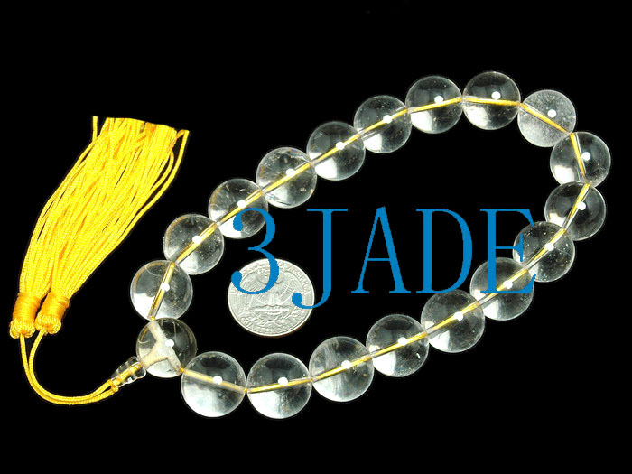 Product DetailsMaterialNatural pure white crystalSize18 plus Guru beads, each bead is 16mm in diameterNet Weightapprox. 140 gramsManufacturer Info.3JADE ASSOCIATION (China), Inventory No. E016020Description... This listing is for one prayer beads mala, randomly choosing from our inventory as shown in the pictures below.Rare natural material. Perfect condition, as shown in the picture... Shipping...| Product Details | |