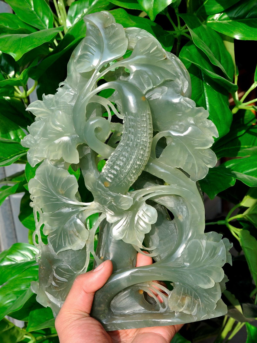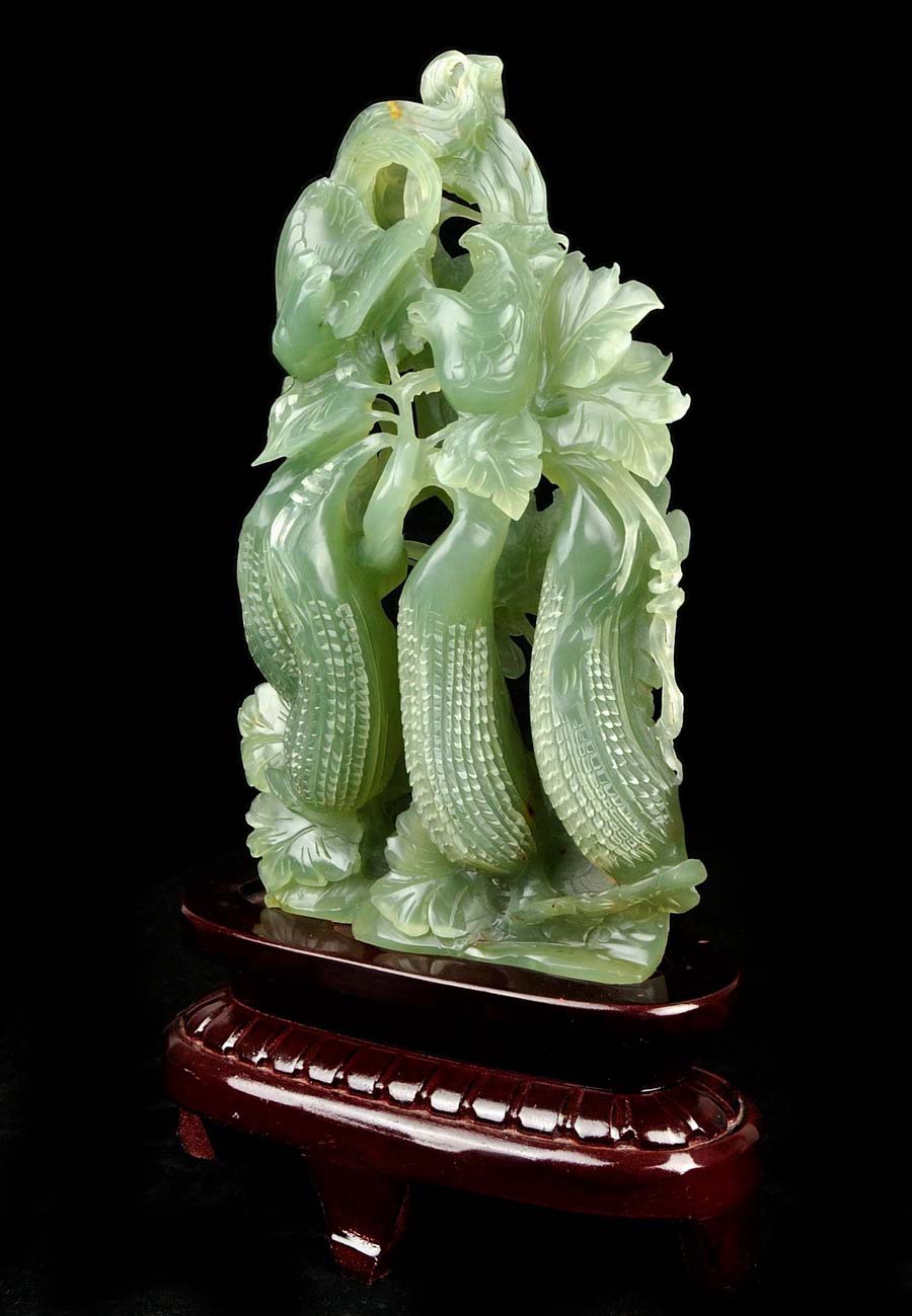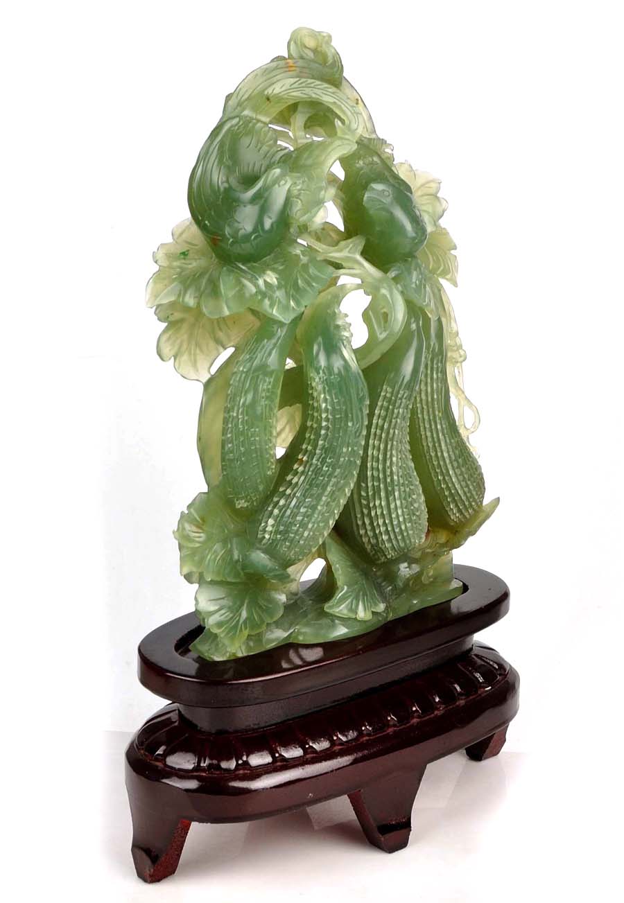 • Carved from one solid piece of natural jade with superb design.