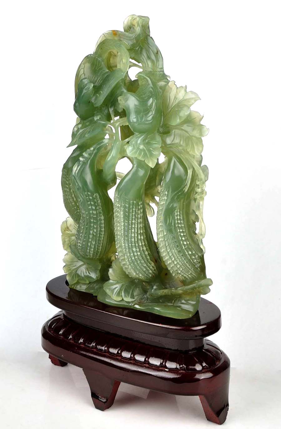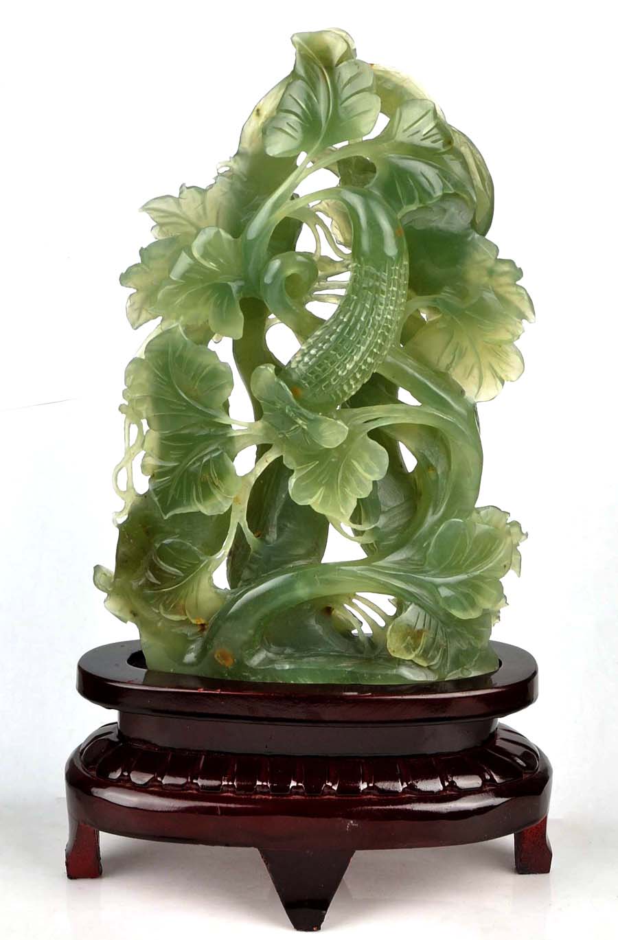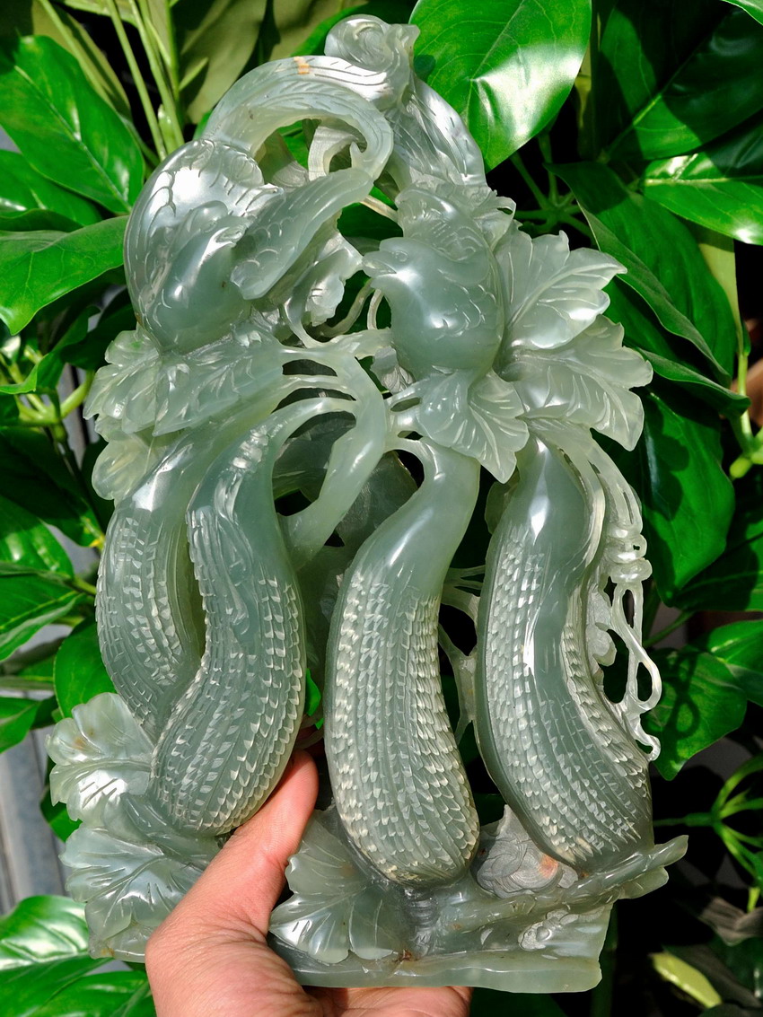 • Carved from one solid piece of natural jade with superb design.