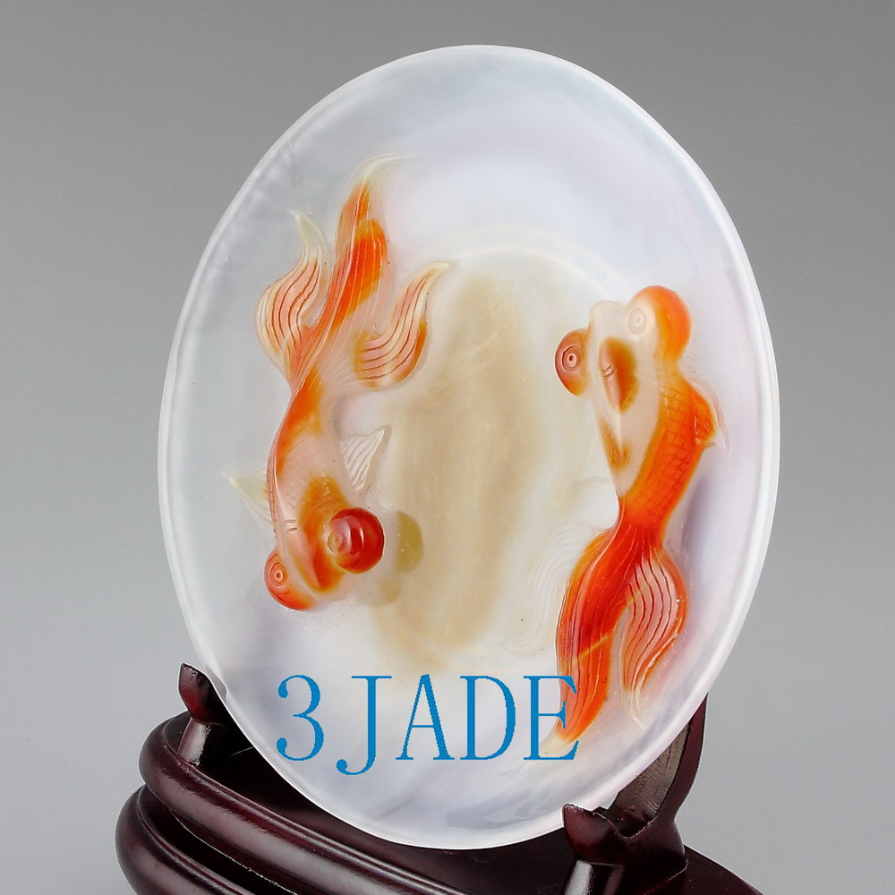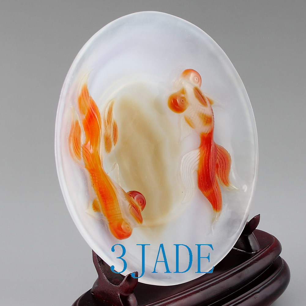 Carved from one solid piece of agate with superb design. Great handwork, as shown in the pictures.